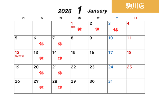 年末年始には、2025年12月29日(月)~2026年1月3日(土)まで長期のお休みをいただきます。皆様には大変ご不便をおかけいたしますが、何卒ご理解の程お願い申し上げます。